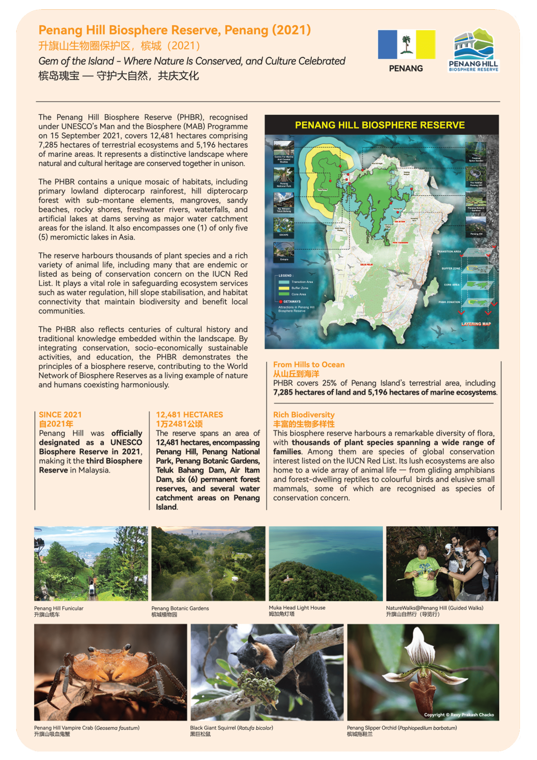 - Penang Hill Biosphere Reserve (designated in 2021)